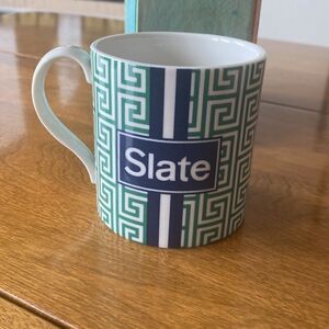 EUC. This fun coffee/tea/cocoa mug designed by Jonathan Adler for Slate Magazine's Slate Plus members in 2014.