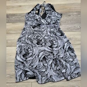 Jonathan Martin chic Black/White Floral Print Dress v neckline and back, size 8