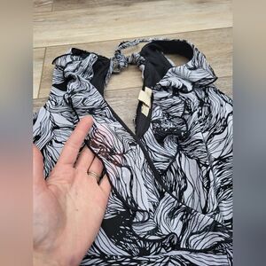 Jonathan Martin Black/White Floral Print Dress! With its extra low cut v-neck and v-back, this dress is the epitome of elegance. Perfect for transitioning seamlessly from day to evening, it boasts a cocktail length that hits all the right notes. The soft sketch swirl floral pattern in classic black and white adds a touch of sophistication. And let's not forget about the ruffled neckline that adds a playful twist to this already beautiful dress. Prepare to turn heads as this dress flows beautifully with every step you take.