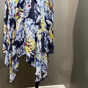 Jonathan Martin Mesh Floral Sleeveless Dress Handkerchief Hemline