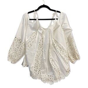 Jonathan Simkhai Salma Cold-Shoulder Broderie Anglaise Top White lace Blouse XS