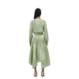 Jonathan Simkhai The Cassia Metallic Chevron Silk/Lurex Midi Skirt in Celery- Si