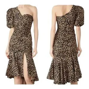 Jonathan Simkhai Leopard Print One Shoulder Dress