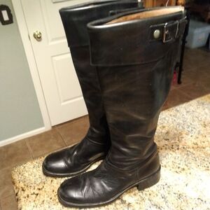 Jones Bootmaker Black Equestrian Riding Knee Booties Spain 9.5 Leather Heels Zip