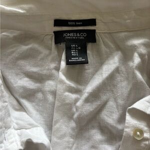 Jones &CO White Long Sleeve Relaxed Button Down Shirt 100% linen