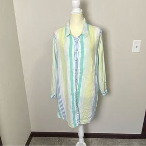 Jones & Co. 100% Linen Colorful Stripped Button Front Tunic Women's Size 1X