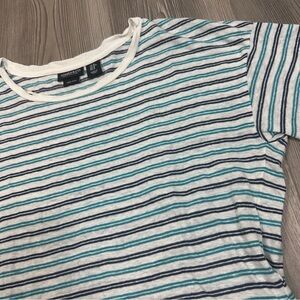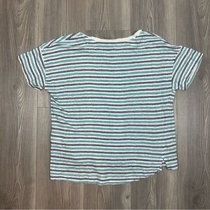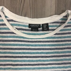 Jones & Co Blue White Striped Linen T-Shirt Medium Short Sleeve Coastal Summer