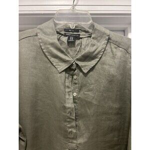 Jones & Co Jones NY 100% Linen Over Shirt Roll Up Sleeves Buttons Army GREEN 1X