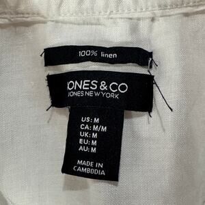 Jones & Co Medium Linen Top Button-Up Sleeveless Hi-Low Semi-Sheer Collar White