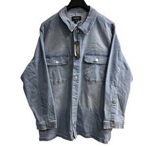 Jones & Co Shacket Womens 2X Faded Denim Button Down Shirt Western Workwear