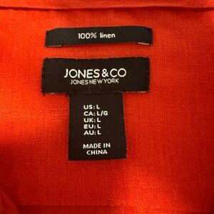 Jones & Co Women’s 100% Linen Red Blouse Size L