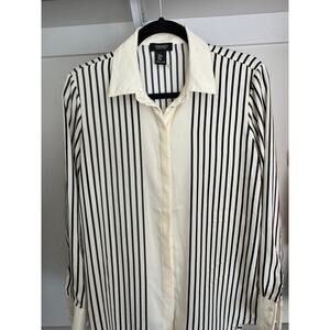 Jones & Co Women's Striped Button-Up Blouse Shirt Size Medium Satin-Feel