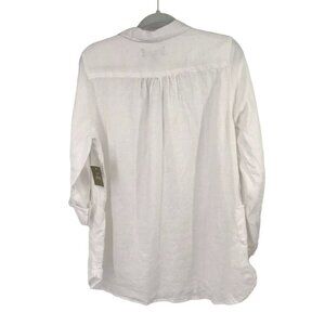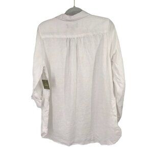Jones & Co Womens White 100% Linen popover Top Size Large roll tab sleeve new