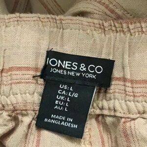 Jones & Co, tan stripe linen blend pants. Size L