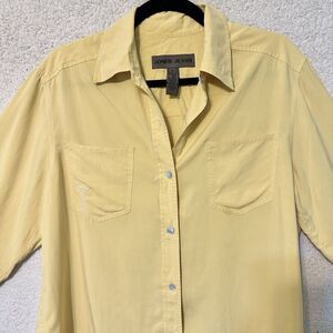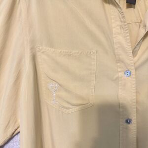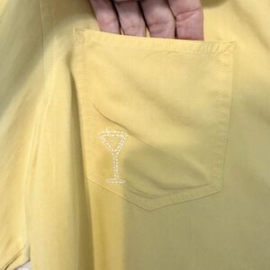 Jones Jeans Button Down Blouse 100% Silk Yellow M "Cheers" Embroidered