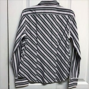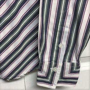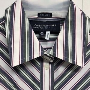 Jones Multi Color Stripe Collar Long Sleeve Cotton Button Up Top Size PS