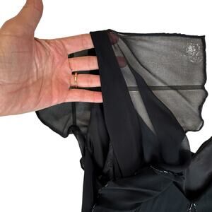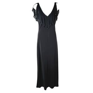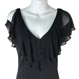 Jones New York Black Formal Gala Dress Women's Sz 8 Silk Trim Flutter Sleeve Maxi V Neck Bead