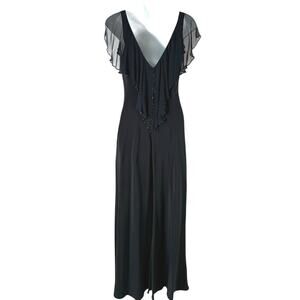 Jones NY Black Formal Maxi Dress Sz 8 Silk Trim Flutter Sleeve Gala V Neck Beads