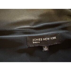 This pretty dress is from Jones New York in a women's size 16. Solid jet black in color. Thick jersey fabric.