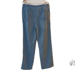 Jones NY Chambray Med Pant Blue Linen Pull on Wide Leg Relaxed Drawstring MED