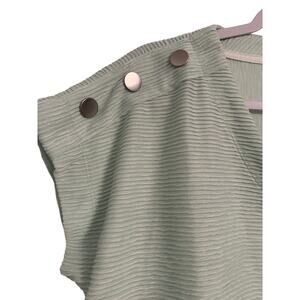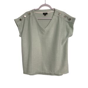 Jones NY Chic Textured Pastel Green Silver Button Dolman Sleeve Oversized Top S