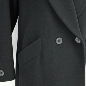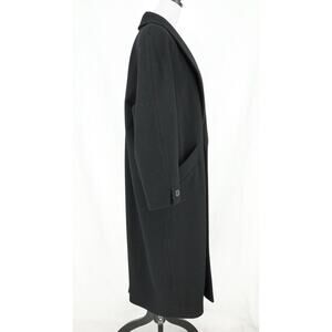 Jones NY Coat Petites 10P Black Wool Long Overcoat Shoulder Pads Vintage