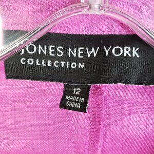 Jones NY Collection 100% Linen Blazer Jacket Lightweight Floral Pink size 12