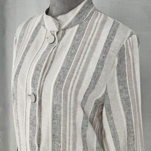 Jones NY Jacket Womens Medium Ivory Gray Linen Blend Mandarin Collar Blazer