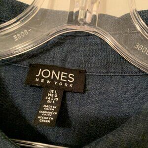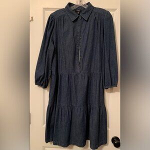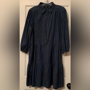 Jones NY L Tiered Denim Shirt Dress Midi Buttons Roomy
