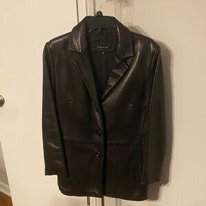 Like new! Sharp leather jacket by Jones New York with lined pockets, size medium. Pit to pit buttoned 20” length 29”. Gorgeous!