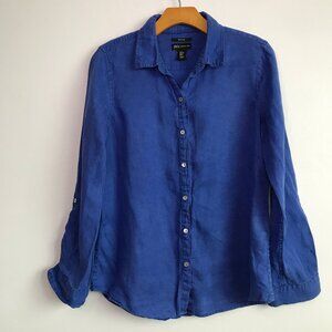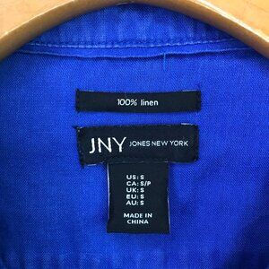 Jones NY Linen Shirt Royal Blue Button Front Womens S