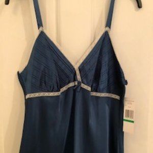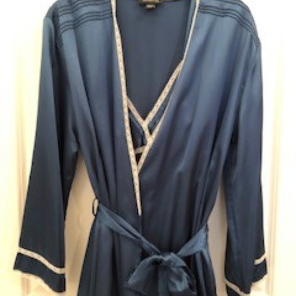 Solid Satin - Midnight Blue Nightgown & Robe - Brand New - Never Worn - Lace trim. 2 pieces - Robe has inside tie and outside tie/ribbon.