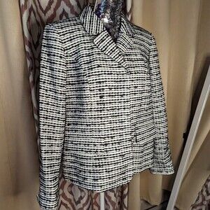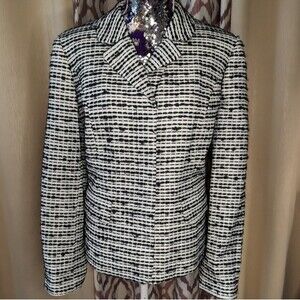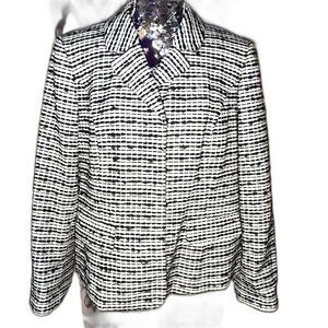 Jones NY Size 14W Black & White Tweed Single Breasted Blazer Jacket