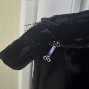 Elevate your wardrobe with the Jones NY Skirt, an elegant piece that boasts a charming blend of fairy tale whimsy and gothic allure. The luxurious silk velvet fabric, adorned with a subtle floral burnout pattern, offers a sophisticated sheer effect that's perfect for a variety of occasions, from workwear to formal events. Its flare style and midi length make it a flattering choice for those who appreciate a touch of vintage grace. The skirt features a convenient zip closure and is lined for comfort, with a lightweight feel that doesn't compromise on quality. PLEASE NOTE CLOSURE: The hook and clasp are present but need resecured (see picture). Zipper still fully functional. The versatile black color paired with the romantic character of the design makes it an ideal match for any festival, party, or casual outing. Whether you're aiming for a 90s-inspired look or a modern dark romantic vibe, this skirt is a timeless addition to your collection.
