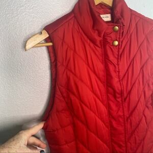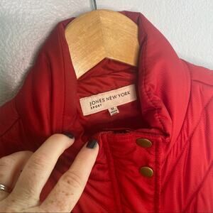 Beautiful Jones NY Sport red puffer vest. Preowned, and in new condition. Brushed hold button w zipper in front. Button closure pockets on front also.