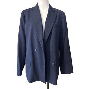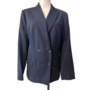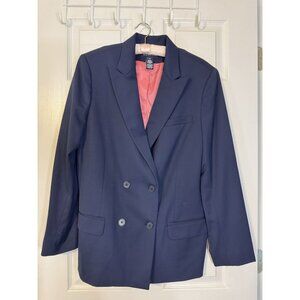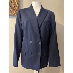 Jones NY Suit Jacket Blazer 14 Navy Blue Double Breasted Stretch Wool NEW