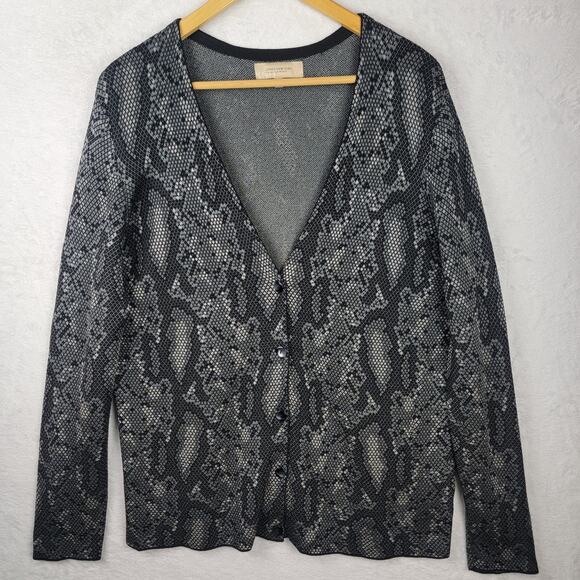Jones NY Sz 1X Cardigan Snakeskin Black Gray 5 Button Office Eveningwear Party