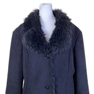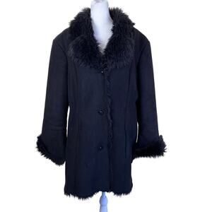 Jones NY Sz XL Vintage Y2K Penny Lane Style Faux Fur/Suede Winter Coat Black