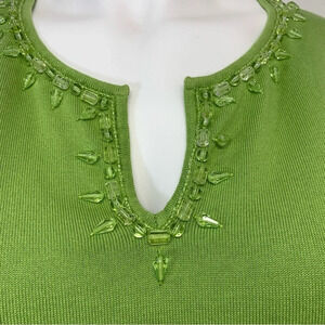 Jones NY Top 3X Woman Green Beaded V Neck
