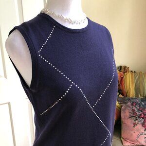 Jones New York Sweater Vest Merino Wool Y2K Vintage Vest with Rhinestones Navy (S)