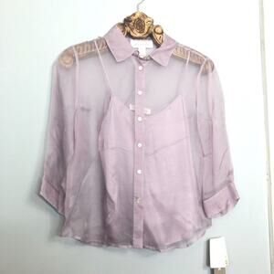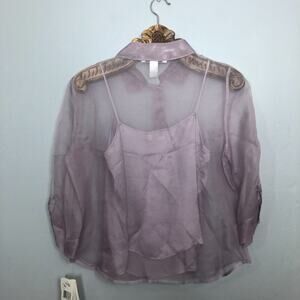 Jones NY Vintage 3pc Silk Set Lilac Sheer Top with Cami 12 Floral Midi Skirt 10P