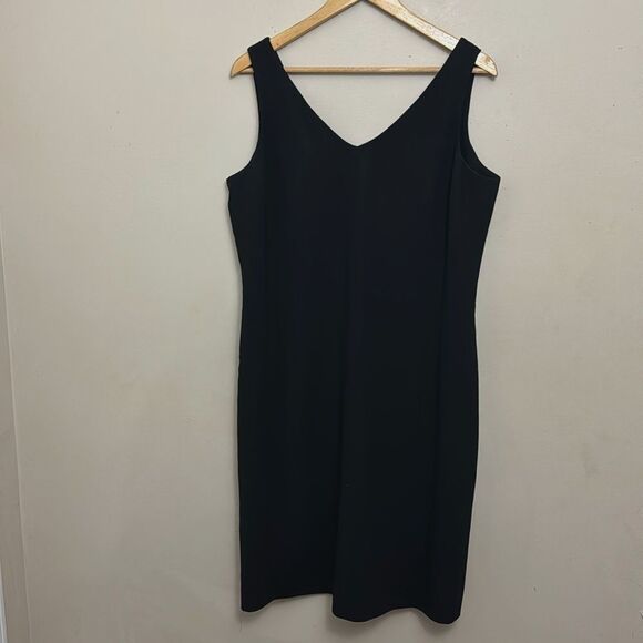 Jones NY V-neck Sleeveless Sheath Dress Black size14 Party LBD Minimalist Career