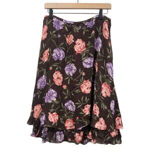 Jones NY Woman Brown Pink & Purple Floral 100% Silk Skirt 18W XXL