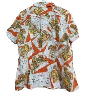 Jones NY Women’s Vibrant Orange Multi 100% Cotton Text Graphic Print Shirt Sz-L