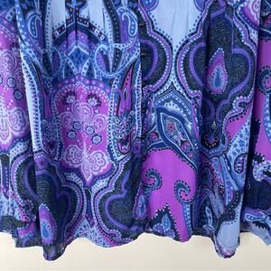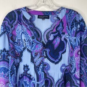 Jones NY blue purple pleated chiffon lightweight abstract button front top XL