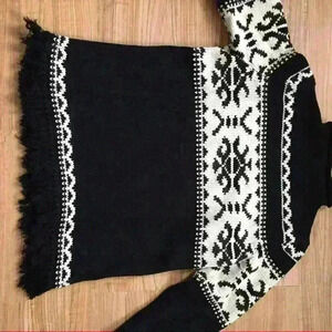 Snowflake designed sweater with tassels on the bottom. EUC no signs of wear or pilling. Runs large