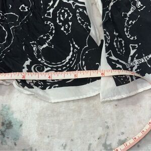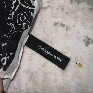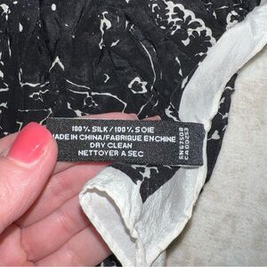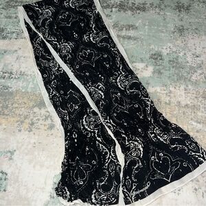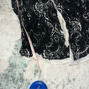 Elegant black and white scarf with intricate patterns. Perfect for adding a touch of sophistication to any outfit. Measurements fold in half long ways