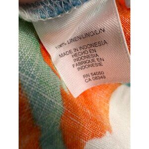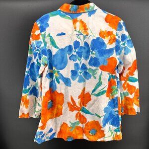 Jones New York 100 Linen Blue Orange Floral All Over Button Up Top Small Flowers