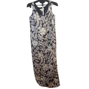Jones New York 100% Linen Maxi Dress Size 10 Navy Floral Sleeveless Summer