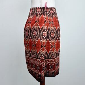Jones New York 100% Silk Autumn Boho Faux Wrap Straight Skirt NWT